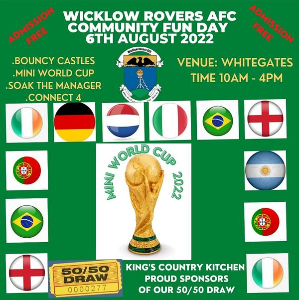 The club ran their annual community fun day today with the highlight of the day been the staging of our mini world cup. The competition proved to be a huge success with parents and kids alike. Competition 1 was for the 7's and 8's. This competition was a closely fought battle right up to the last group games. At the end of the group stages nothing could seperate England and Germany with both teams finishing level on ten points at the top to book their place in the final. Holland and Argentina finished in a close third and fourth on eight and seven points. The final proved to be a closely fought encounter with England winning 2-1. The under 9's/10's proved to be the tightest group of the day with three teams finishing joint top on twelve points. Argentina, Spain and Italy all finished level and the only way to seperate them was goals scored, Argentina scored the most goals and it was left to Spain and Italy to playoff for the right to take on Argentina in the final, Spain won the playoff by a goal to nil. The final was a nail biting affair with Argentina coming out on top winning 1-0. In the 11's and 12's section Holland and Portugal proved top dogs with the Dutch topping the group on thirteen followed by Portugal on twelve points. In the final Portugal narrowly defeated Holland on a scoreline of 2-1. Finally in the 13's/14's competition it was Republic of Ireland who topped the group followed by Spain, third were Italy with Argentina next. In the 3rd/4th place playoff Italy defeated Argentina winning 6-4. The final was a nine goal thriller with the Republic of Ireland coming out on top against Spain winning 5-4. The event was a major success and as always it was great to see the kids enjoying themselves and playing football with smiles on their faces, well done kids. After all the football they still found the energy to take on the bouncy castles with the obstacle course coming in for special attention.