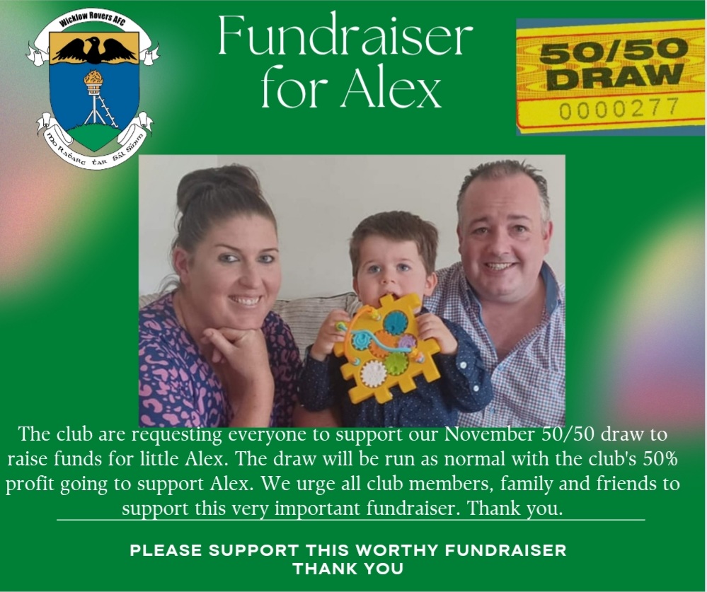 We are urging everyone to buy a ticket to support this great cause. Tickets are only €5 and can be purchased online at www.wicklowroversclubshop.com