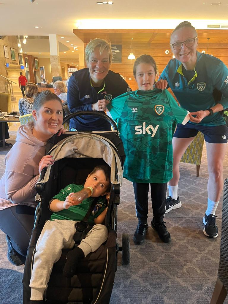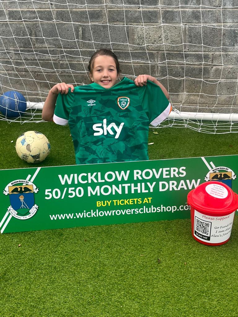 Pictured is Alex, his mother Cliona and his sister Ella who plays for the club meeting members of the victorious Republic of Ireland senior ladies squad in the build up to last night's World Cup play-off victory over Scotland. We have no doubt that Alex gave the Irish team the support, determination and inspiration to go and give everything in their successful quest last night. Alex now needs all our support, we ask all members, their families, friends and the wider community to support this worthy cause. The draw will operate as normal, 50% taking in will go to the winner of the draw with a further chance to win the bonus ball jackpot of €2,900. The club’s 50% from the draw will be donated to help raise funds for Alex (I am Alex). Remember you can purchase your tickets at www.wicklowroversclubshop.com or alternatively you can contact any club committee member or any member of the club, thank you.