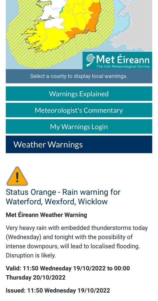 Due to the bad weather and the status orange weather warning from Met Eireann the club have decided in the interest of health and safety to close all club facilities for today and tonight. Not only with the threat of thunder and lightening it is also dangerous on the roads with spot flooding. Stay safe and only drive if its really necessary. Thank you