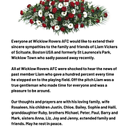 The Wicklow Rovers AFC community wishes to share the f...